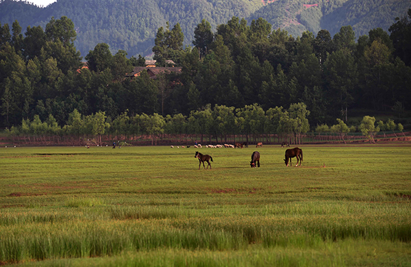 云南省会泽县大桥乡注重生态环境保护,时至夏日,庄稼地里鲜花盛开,山川河谷草肥水美,田园风光秀美迷人。
