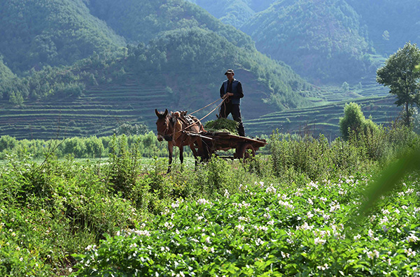 6月6日,会泽县大桥乡一农民驾着马车行走在乡间路上。