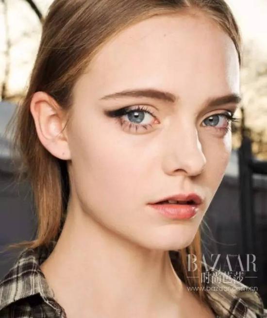 这个“落尾眉”其实来自于Dior秀场,众多仙女们都化着落尾眉亮相,但是圆脸的妹子驾驭的最好,“落尾眉”偏粗的形状在脸上十分抢眼,偏长的长度与眼尾同方向,这样有效缩短了颧骨的宽度,进而让她们的脸从视觉上缩小一圈!