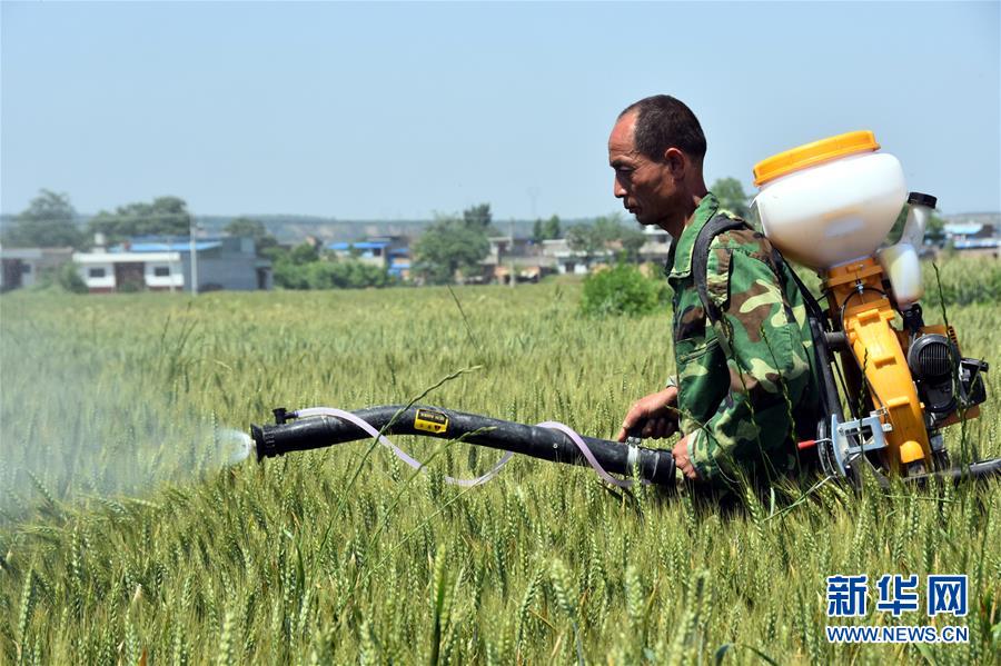 5月17日,宝鸡市千阳县张家塬镇观明村的一名农技人员操作一架植保无人机在麦田作业。针对近期小麦病虫害发生形势严峻,陕西各级农业部门防病治虫,努力夺取夏粮丰收。截至5月16日,陕西全省小麦病虫发生面积4177万亩次,防控面积3938.5万亩次。新华社记者都红刚摄