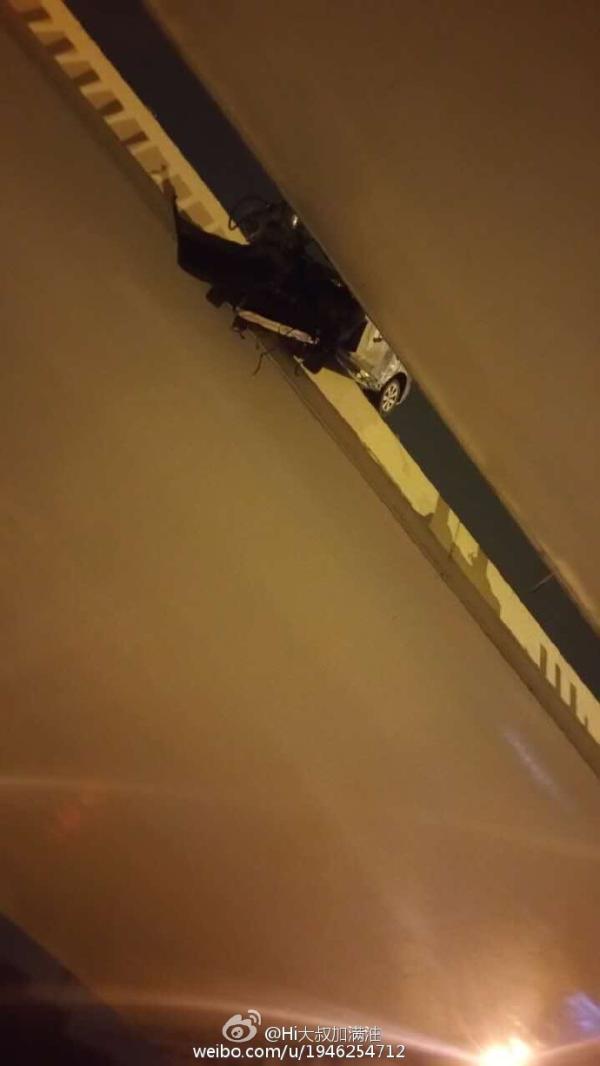 6月22日凌晨,上海中环路近南北高架路卢浦大桥方向发生一起交通事故。网友“Hi大叔加满油”在微博爆料:一辆奥迪A4发生车祸,撞向防护栏,悬停在高架之间。轿车车头已经被撞的面目全非。车内司机头朝车后座,脚露在窗外,汽车随时都有掉落的危险。