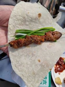 有报道称,被列入2022年全国十大考古发现终评名单的临淄赵家徐尧遗址,便发现了距今约13000年的烧烤食物遗存。还有报道显示,淄博烧烤起源于清朝乾隆年间的小摊贩,并首创了用豆腐皮包裹、炭火烤制羊肉串的方法。这赢得了当地人的喜爱和良好的口碑。后来,这种烤肉方式逐渐流传开来,成为淄博独具特色的美食。