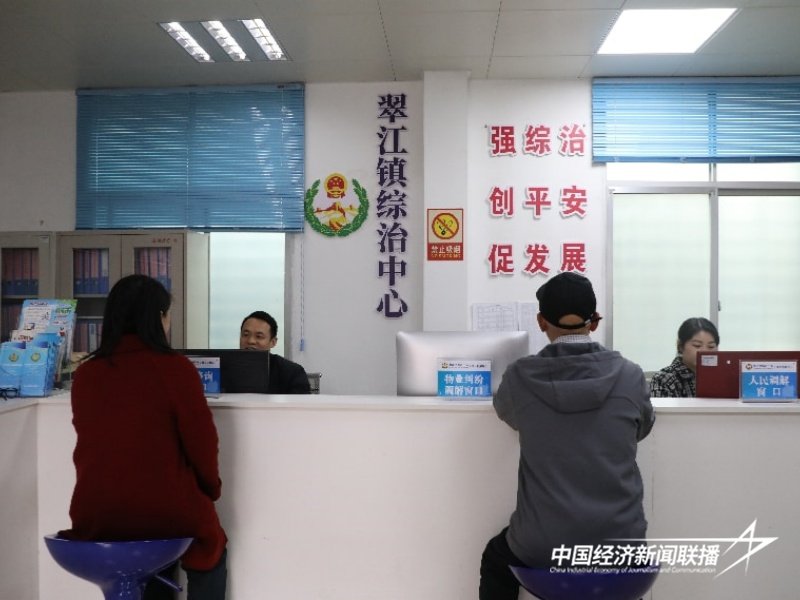 去年1月,翠江镇综治中心正式成立,设置引导受理区、多元化解窗口、综合调解室及3个特色功能调解室。多元化解窗口整合派出所、司法所、村建、民政等15个部门入驻联动,接入并运行网格化服务平台、综治视联网和“雪亮工程”,形成上下联动、左右协调、多方配合、齐抓共管的运行机制。