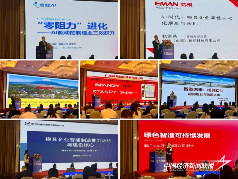 主题峰会上,来自金蝶、益模、发那科、商鼎智能、金龙汽车智能科技、赛西科技、ABB开关等单位的行业专家依次登台,带来了一场知识与经验的盛宴。他们围绕AI+管理、柔性制造智能工厂、AI+注塑成型、电火花机国产替代、模具软件技术、智能制造能力建设及评估、绿色制造可持续发展等核心议题展开深度分享。从财一体化AI应用到智能工厂规划落地,从前沿注塑技术案例到国产设备替代方案,从企业能力建设路径到标杆实践经验,全方位、多维度地为模具企业提供了可落地、可复制的转型思路与解决方案。