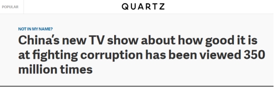 美国财经网站Quartz则以《中国的最新电视剧介绍政府雷厉风行的反腐斗争,观看次数已达3.5亿次》作为文章标题,并且强调这部耗资1.2亿元的电视剧仅仅是中国检察院影视中心已生产的5部反贪污题材的戏剧之一。