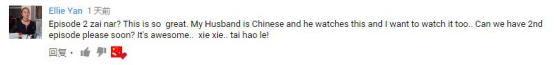 Ellie Yan:第二集在哪儿?这真是太棒了。我老公是中国人,他看这个我也想看,咱们能快点上传第二集的字幕版吗?简直太棒了,谢谢,太好了!