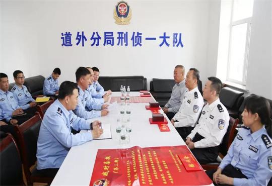 【中经联播讯】5月31日,为进一步推进扫黑除恶专项斗争向纵深开展,进一步激励警心、鼓舞士气,激励广大分局民警投身安保攻坚战役,按照哈尔滨市政府党组成员、市公安局党委书记、局长刘亚洲关于强化扫黑除恶专项斗争党的建设的指示,结合分局实际,道外分局启动战时表彰奖励程序,开展以走访先优送奖励到一线、走访基层送喜报到单位、走访民警送温暖到岗位上的“三走三送”活动。道外区副区长、分局党组书记、局长刘凤升,分局党组副书记、政委姚杰,分局党组成员焦再仁、潘志毅、赵磊参加慰问活动。