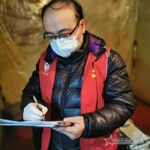 下沉党员王乐吉为入出小区人员登记