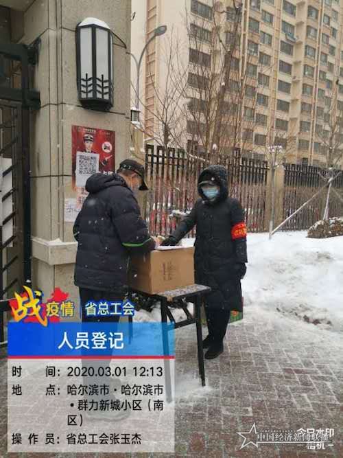 党员干部下沉的冲锋号吹响以来,省总工会机关及在哈事业单位60名党员干部第一时间与社区对接上岗,全身心地投入到疫情防控工作之中。他们进小区、进单元、进卡点,与社区工作人员一并编组、一并巡逻、一并值守,做好人员排查、测量体温、车辆登记、消毒隔离、宣传引导等各项防控工作。他们每天工作2、3小时至6、7小时不等,有的值夜班工作时间达12小时之久。无论是新搭建的简易棚里,还是风雪交加、空旷寒冷的大街上,他们都义无反顾投入到疫情防控一线,助力社区管控,排查潜在风险,确保不漏任何一个“火星火点”,在新岗位上用龙江“工会人”踏实默默付出实际行动汇聚成战胜疫情的磅礴力量。