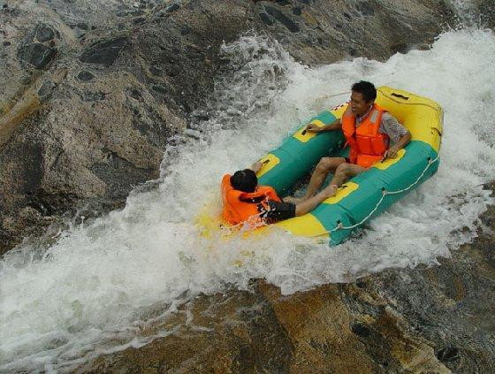 2.漂流时不可将贵重物品(如手机、相机类电子产品、首饰等)及现金和皮鞋携带上船,若有翻船或其它意外事情发生,漂流公司和保险公司不会赔偿游客所遗失的现金和物品;若感觉机会难得一定要带相机的话,最好带价值不高的傻瓜机,事先用塑料袋包好,在平滩时打开,过险滩时包上,而且要作好丢入水中的思想准备;戴眼镜的你一定别忘了用皮筋系上眼镜。