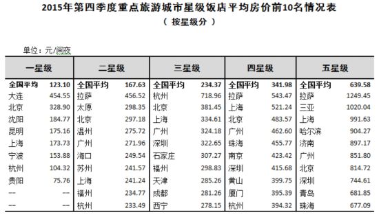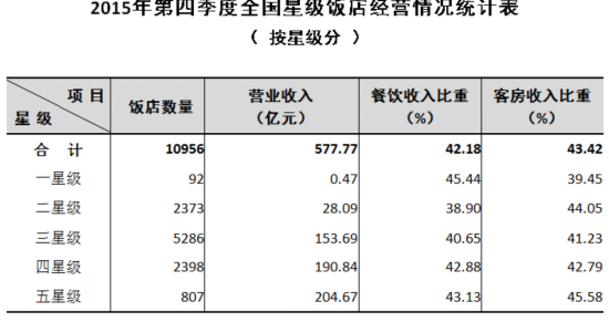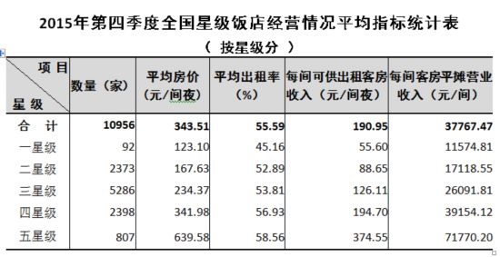 原标题:2015年第四季度全国星级饭店统计公报