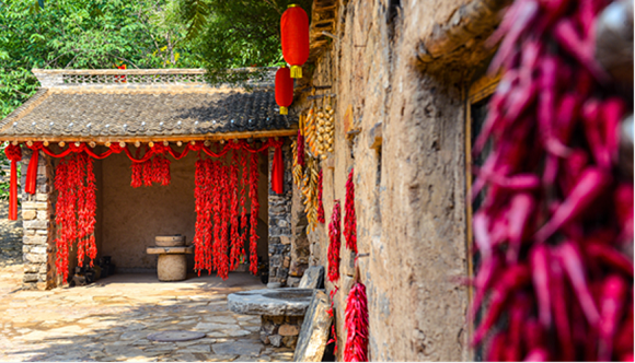 我们辣椒院有碾槽、捣辣椒石钵、铁钵,大家可以体验制作辣椒面的过程。只有亲自体验了做辣椒面的过程,你今后吃起辣椒才会更香、更辣、更豪爽。