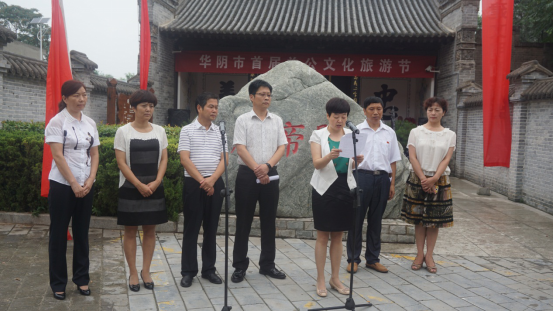 开幕式上,华阴市文物旅游局局长史会昌致词:每年的农历6月24日,是群众祭祀关公的日子,在这一天举办华阴市首届关公文化旅游节,意义重大而深远。这既是对关公的祭拜尊崇和纪念,也是弘扬关公文化、培养人们社会主义核心价值观、规范道德行为、构建和谐社会、开展文化交流所必须。