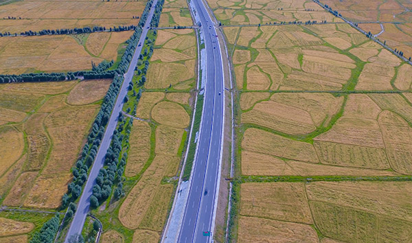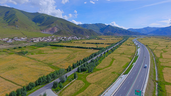 时下,正是拉萨河谷一带秋收季节,空中俯瞰拉萨河谷,阡陌间遍地黄金,山河壮美如画,行驶在拉林高等级公路上,犹如走进一幅画卷。