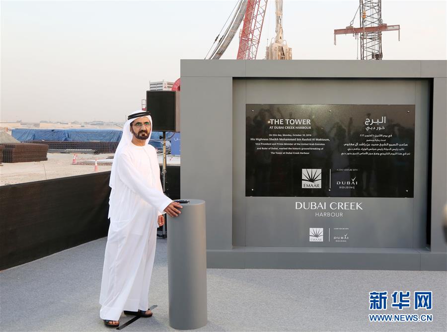 10月10日,在阿联酋迪拜,阿联酋副总统兼总理、迪拜酋长穆罕默德·本·拉希德·阿勒马克图姆为未来“世界最高塔”启动奠基仪式。