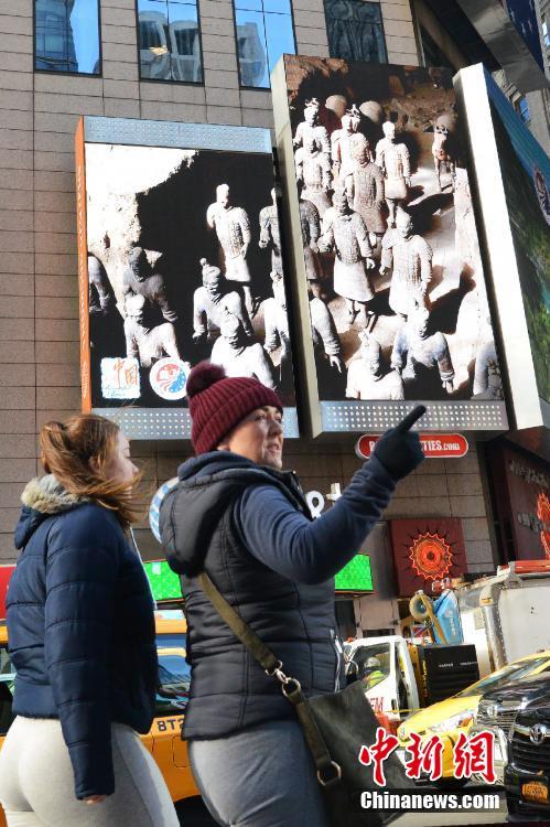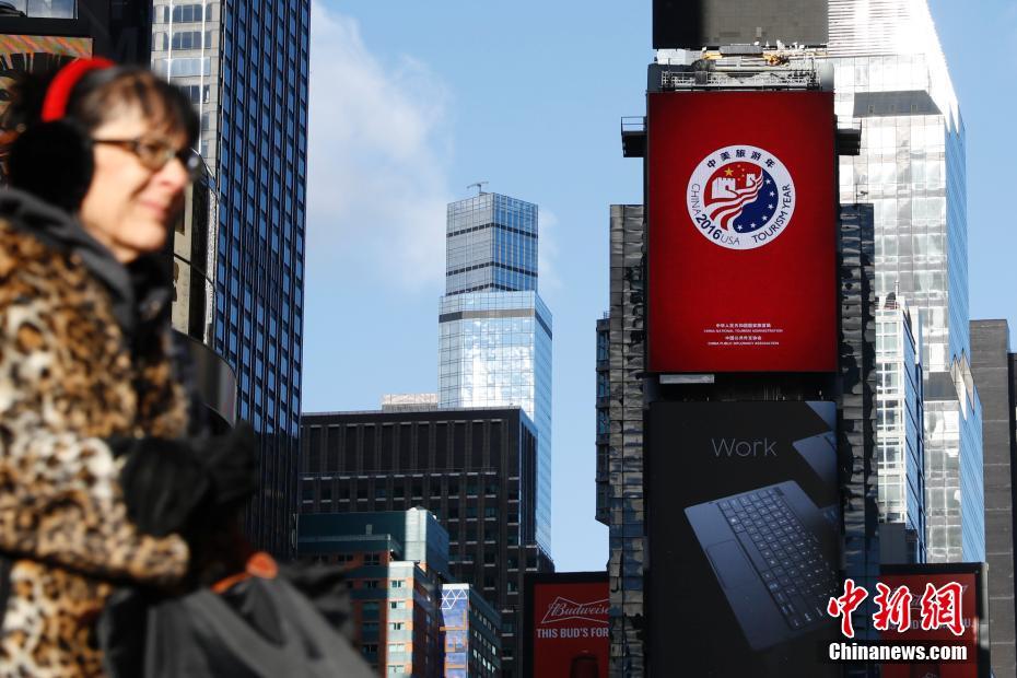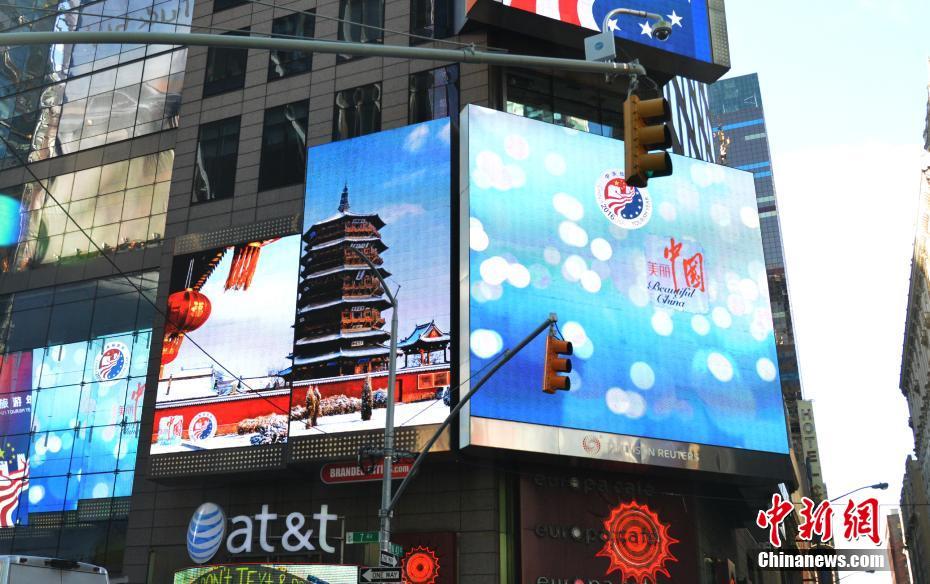 当地时间11月22日,纽约时代广场户外屏幕播放着中国旅游形象宣传片。时值2016中美旅游年收官之际,该宣传片将每日在纽约时代广场循环播放直至月底,以展示中国著名旅游景点的迷人风采,吸引美国游客赴中国旅游。中新社发 袁月明 摄