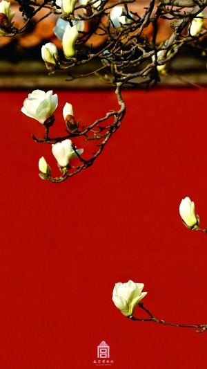 其实,早在放送杏花美照之前,已经有玉兰出镜了。仲春,紫禁城里难觅迎春花的踪影,所以玉兰担起了“迎春”的职责。同样是红墙琉璃瓦的旁边,玉兰花迎着轻柔的阳光,沐浴在春日的暖风里。