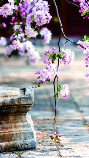 看梨花,要到承乾宫和寿康宫。承乾宫是内廷东六宫之一,明清两代后妃的寝宫。看海棠花的去处最多,分别是文华门、寿康宫、永寿宫和古华轩。还有丁香花,在慈宁宫花园、寿康宫、宁寿宫都有种植。在这里观众会发现,寿康宫种植的花卉可真是不少,前面说了三月有杏花,到了四月又能看到梨花、海棠与丁香一起争奇斗艳了。而象征富贵的牡丹也在这时开放了,就在御花园和慈宁宫花园。御花园同时还能看到楸树花和紫藤。