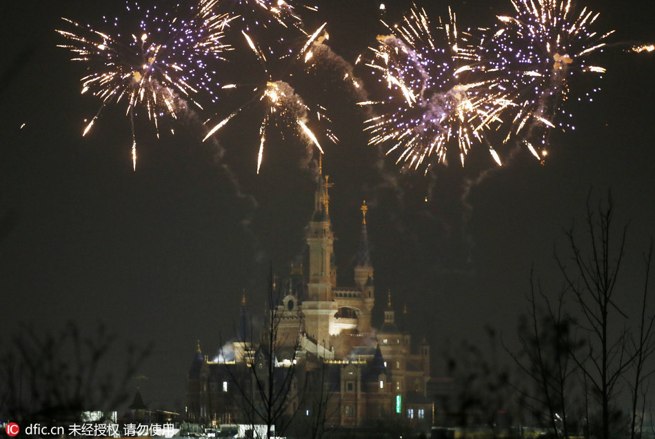 上海迪士尼3月28日焰火秀测试