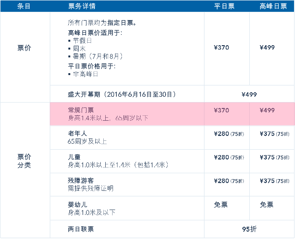 换算成港币与香港进行对比,上海迪士尼的平日票价更便宜,但高峰日票价更贵,而且对外营业的前15天(6月16日至30日),票价一律采用较贵的499元人民币那一档。