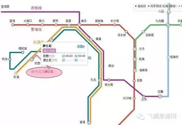 香港的迪士尼在大屿山,可以乘地铁过去,有单独的迪士尼线,由于换乘迅速,所以一个小时、甚至不到一个小时就可以从市中心(香港岛)到达迪士尼了;而如果是从九龙过去就差不多半小时就到了。