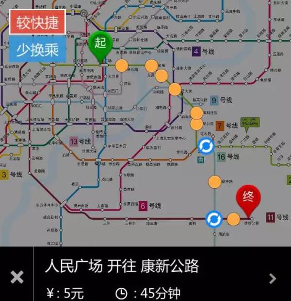 再看上海,以人民广场为市中心,到迪士尼的话,最快2号线转16号线,再转11号线,就可以到迪士尼地铁站了。目前11号线运营到康新公路,预计如果到达迪士尼的话在1小时以上,这里边包括进站等车、后续几站停留,以及最后一站迪士尼和前一站相对较远等因素。