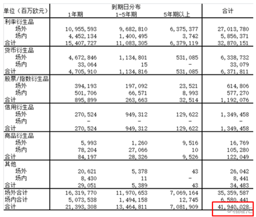 德银的衍生品规模究竟有多大呢?根据2015年年报数据显示,其持有的未到期衍生品规模达42万亿欧元。