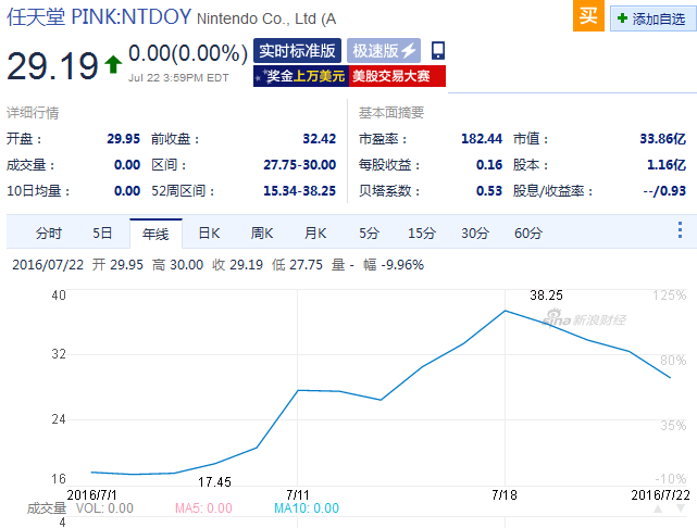 而任天堂美股也在4个交易日里累计跌了30%。