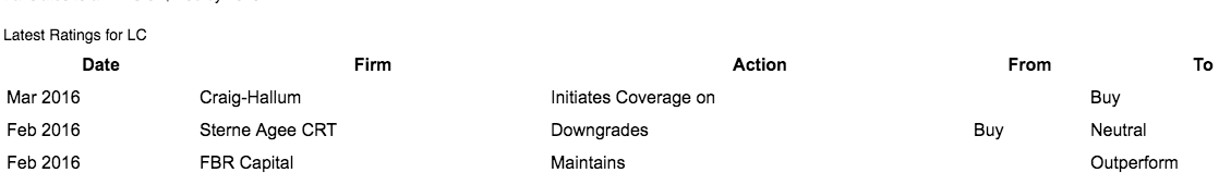 (当前各机构对Lending Club股价的评级)