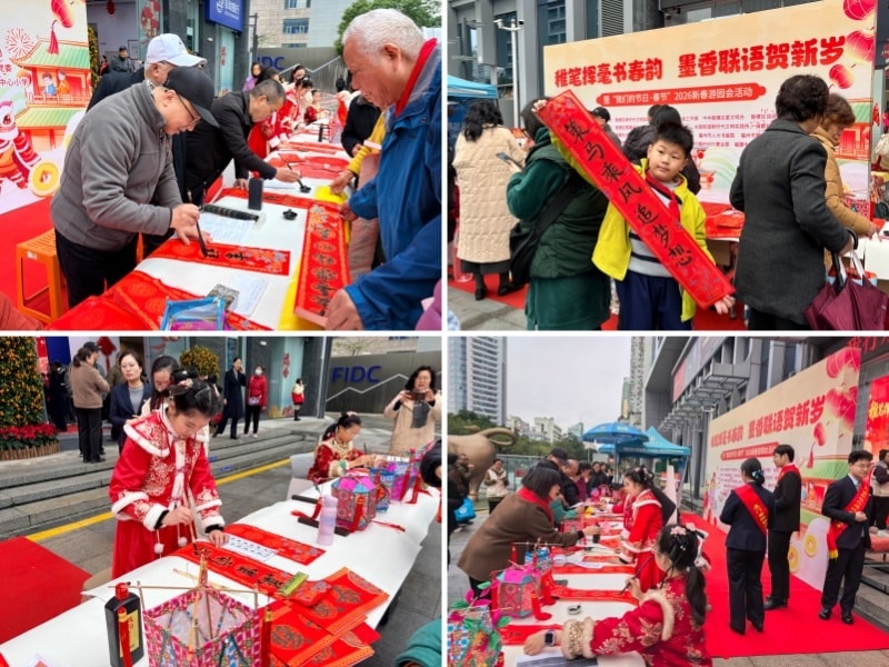 中经联播讯(陈金新 林旭霞 通讯员 吴宸珺)岁末冬寒,年味渐浓。为传承中华优秀传统文化,传递公益温暖,让辖区居民在欢声笑语中迎接2026丙午马年新春,130日,由福建省福州市鼓楼区慈善总会联合水部街道党工委、办事处等单位主办,闽都社区党委牵头承办的“稚笔挥毫书春韵 墨香联语贺新岁”暨“我们的节日·春节”2026新春游园会在古田路厦门国际银行福州分行营业部温情启幕。
