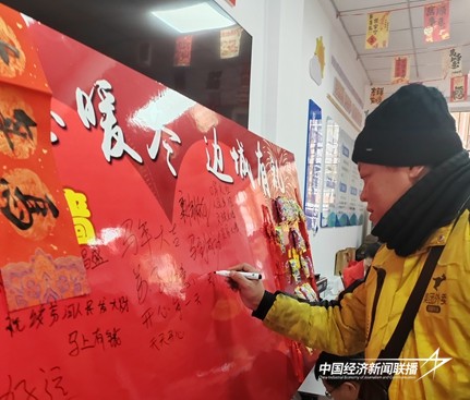 活动现场还特别设置了“和烦恼说byebye”环节。参与者将过去一年的压力和烦恼写在纸上,装入气球后集体踩破,以充满仪式感的方式释放情绪、辞旧迎新。随后,市书法家协会的志愿者们现场挥毫,书写春联和“福”字,将蕴含着敬意与祝福的传统文化礼物送给一线劳动者。接单-送单-催单,平时忙的时候根本没有时间喝水,更别提坐下来吃点水果休息休息了,今天在这里不仅吃到甜蜜蜜的橘子,还领到书法老师现场书写的春节对联和福字真是太开心了,外卖员小李说。
