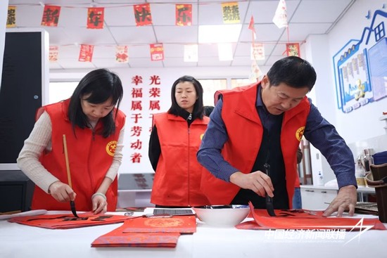 中经联播绥芬河讯(记者李学坤 通讯员田晓慧)新春佳节将至,年味渐浓。2月4日,绥芬河市委社会工作部联合市总工会、市场监督管理局、交通局、委网信办、书法家协会及山城社区等多家单位,共同举办“志愿暖冬 边城有礼”新春暖“新”志愿服务活动。快递员、外卖员、货车司机、电商主播等50余名新就业群体代表欢聚一堂,在温馨氛围中共迎马年新春。