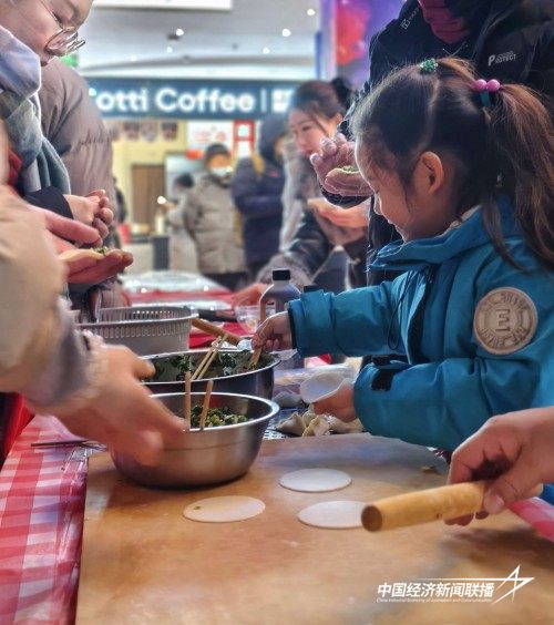 大家携手和面、擀皮、包饺子,煮饺子,笑语盈盈,在人间烟火中拉近情感距离,现场处处洋溢着喜庆祥和的新春氛围。