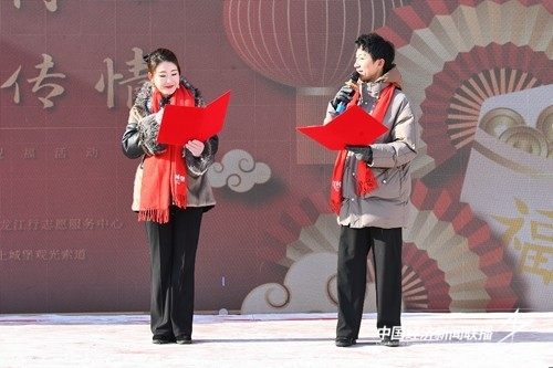 民俗互动现场笔墨飘香、年味浓郁,来自黑龙江龙台文化交流顾问,著名书法家付俊来为两岸同胞挥毫泼墨,写春联、送福字、迎新春,在一撇一捺中传承中华文脉。