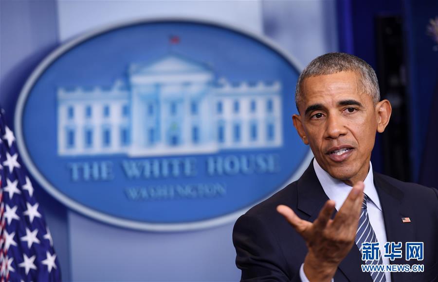 11月14日,美国总统奥巴马在华盛顿白宫举行记者会。奥巴马在记者会上说,美国当选总统特朗普已表示,将继续履行美国对北约和跨大西洋盟友关系的承诺。 新华社记者 殷博古 摄