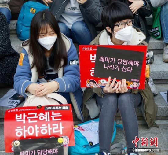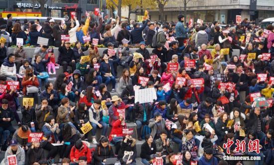 11月19日,韩国首尔爆发“亲信干政”事件后的第四轮大规模集会,示威民众高喊口号,要求总统朴槿惠辞职对该事件负责。因韩国高考刚刚结束,当日有很多学生参加集会。 中新社记者 吴旭 摄