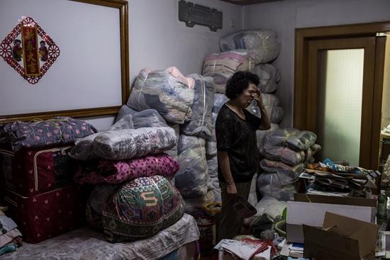 受骗老人吴老太在家中收拾行李,房子被二次过户后,新房主要求她在三天之内搬走。赵赫廷/摄