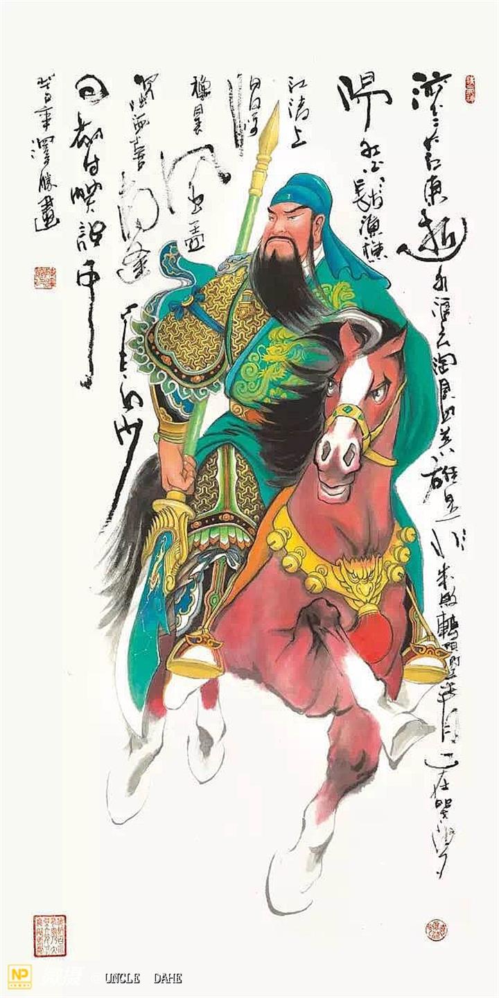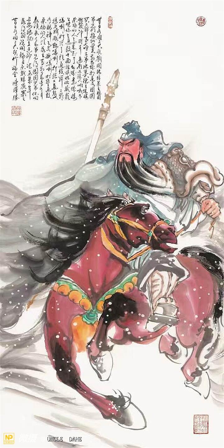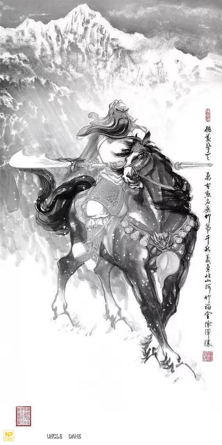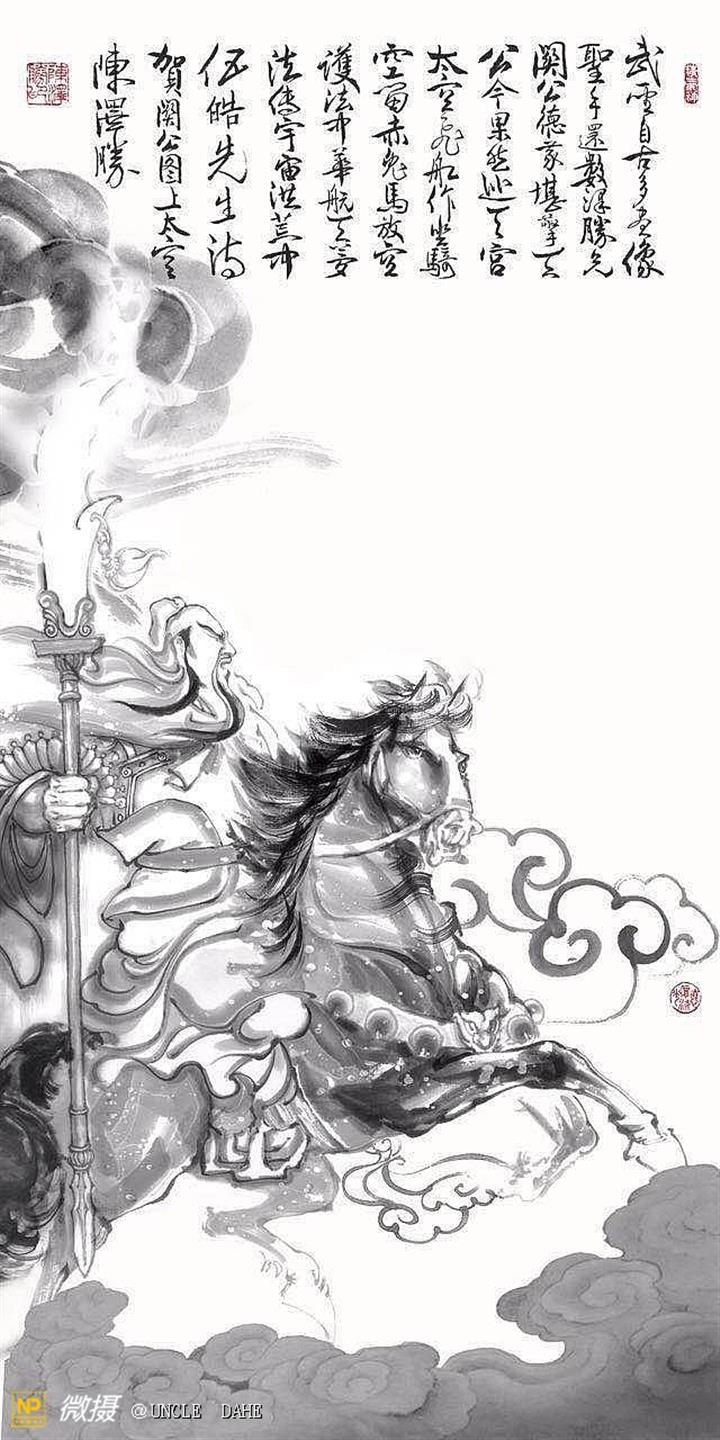 陈泽胜先生是中国当今擅长画关公的画者,作为一名艺术家,画关公不是单纯追求绘画技巧,而是发自内心对关公重德行义高尚精神的崇拜与敬仰。所以,他笔下的关公从来都不是血雨腥风杀伐征战,而是德耀寰宇炳千古,人格立世、德义擎天,止戈为武的武圣!按照中国民间信仰的说法,关公是“真武大帝”,是整个宇宙的护法,近百年关帝更是天上执星宿代行玉帝职能,护佑着天地的和平与安宁。这也启迪我们,什么才叫“真武”?“真武”绝非穷兵黩武,“真武”是不战而屈人之兵的仁义之师、正义之师!
