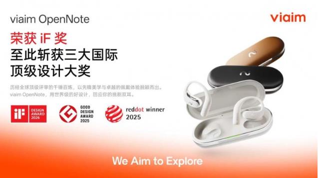 近日,由AI硬件公司未来智能推出的viaimOpenNote斩获2026年德国iF设计奖。这是继德国红点奖与日本G-Mark优良设计奖之后,该产品揽获的第三项国际顶尖工业设计大奖。至此,viaim OpenNote 成为国内首款集齐世界三大权威设计奖项的AI办公耳机,不仅实现了国际设计领域的“大满贯”,更以产品力与品牌力的双重突破,展现了中国 AI 硬件出海的强劲商业潜力与长期价值。