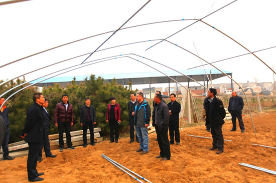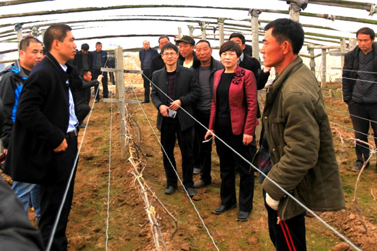 3月12日,专家在山东省平邑县地方镇下坡村与葡萄种植户交谈。
