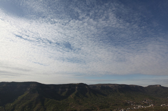 4月10日在山东省临沂市平邑县九间棚景区拍摄的“鱼鳞云”。
