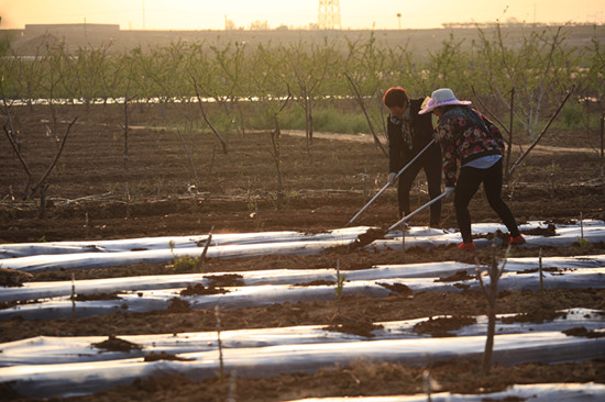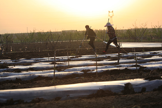 4月19日,山东省临沂市平邑县地方镇农民在田间播种花生、西瓜农作物。
