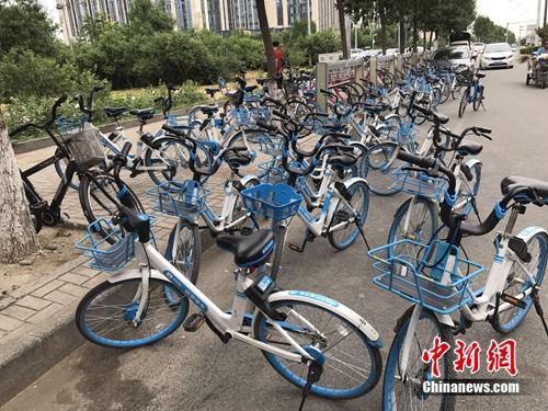 8月份,北京郊区某地突然出现大批的共享单车。中新网吴涛 摄