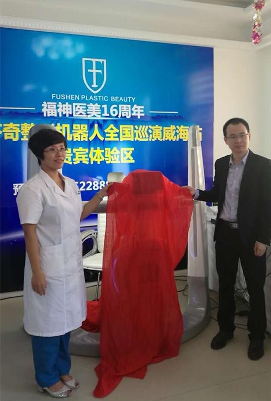 2016年8月16日,山东威海福神整形美容医院迎来了福神十六年院庆,同时举行福神整形美容机构最新首家引进,具有国际先进技术,专为东方女性塑造美丽而定制的,“达芬奇智能整形机器人”揭牌、中国巡演威海体验首站庆典活动!