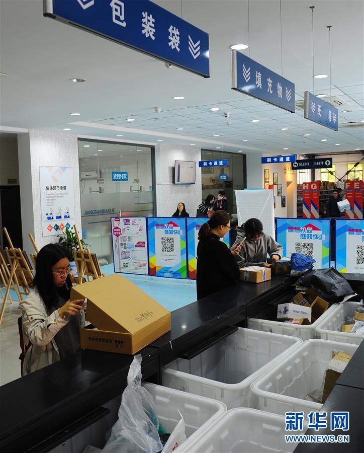 江南大学快递超市中设有快递包装回收区,取件的学生可以将快递包装中的纸箱、包装袋、填充物分别投放在指定的回收箱内,其中可再次利用的由工作人员分拣出并免费提供给寄件学生使用,其余包装物则作为废品分类回收。