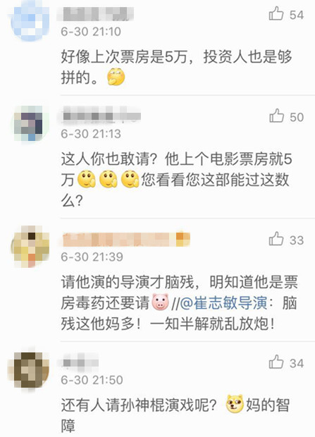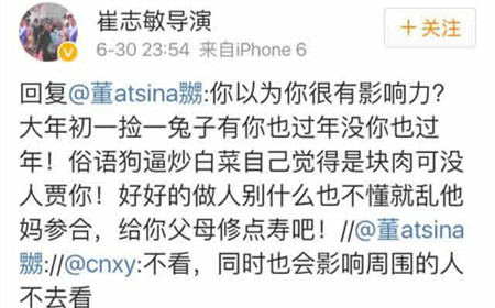 @崔志敏导演 对网友的评论感到愤怒,昨天(30日),他在微博多次手撕网友,“出口成脏”。