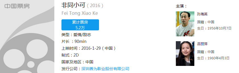 网友评论中提到的“票房5万”,指的是今年1月29日上映的、由孙海英和妻子吕丽萍主演的都市喜剧电影,根据中国票房网的数据,该影片的票房为5.2万。