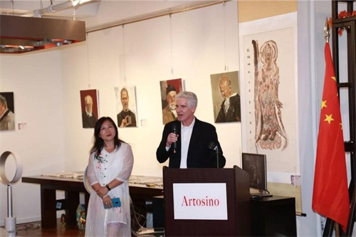 开幕式由雅博艺术馆的王瑞子主持,Helen代表雅博艺术馆致辞, April Zhang-Autio、曲悦铭代表山东映华集团表达对嘉宾的欢迎,美方策展人Paul Campbell、联合国国际学校Johan Autio、艺术家张卫平等分别致辞。