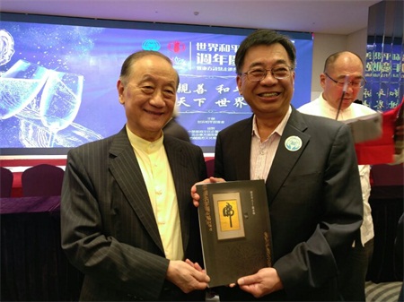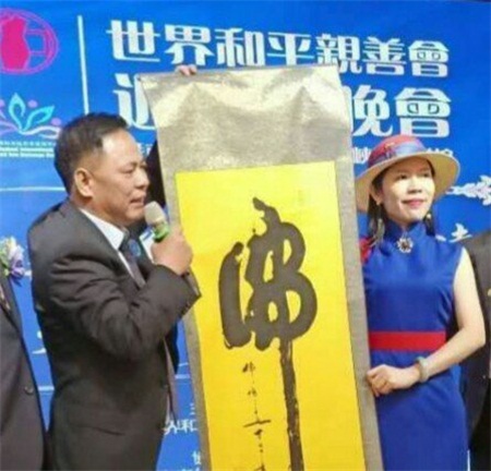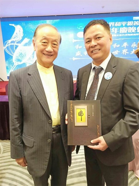 厦门华远文化艺术有限公司总经理、中国微书奇人严水龙,华远文化艺术有限公司执行董事白远洋,华远文化艺术有限公司住台北办事处主任叶庆隆一行参加世界和平親善会。
