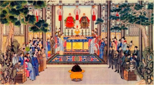 也就是说,在祭祖这样的家族事务中,宝钗等作为薛家乃是外姻,无入祠堂参拜之礼,而宝琴就更隔了一层。家族之间的区隔在清代贵族当中本来极为分明,作者这样一写,似乎就暗示了宝钗终将与宝玉配成姻缘了。